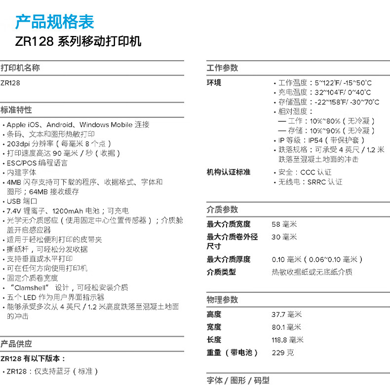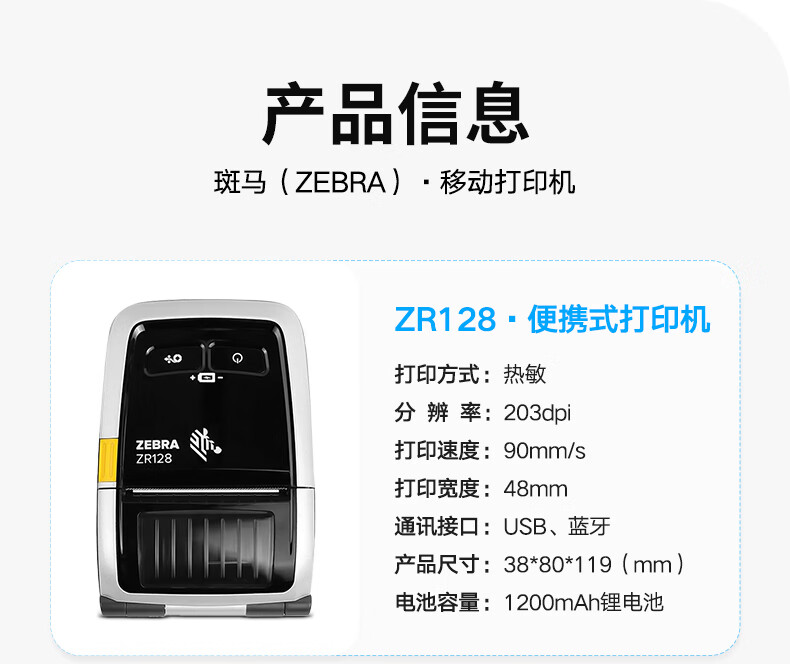 商品关键词:无线条码标签打印机 ZR128 蓝牙版( 48mm宽)