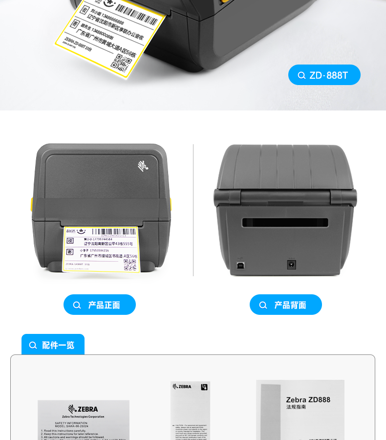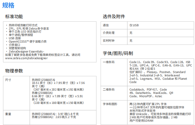 ZEBRA 斑马ZD888T 标签打印机 热转印条码打印机不干胶固定资产服装吊牌快递电子面单 ZD888T