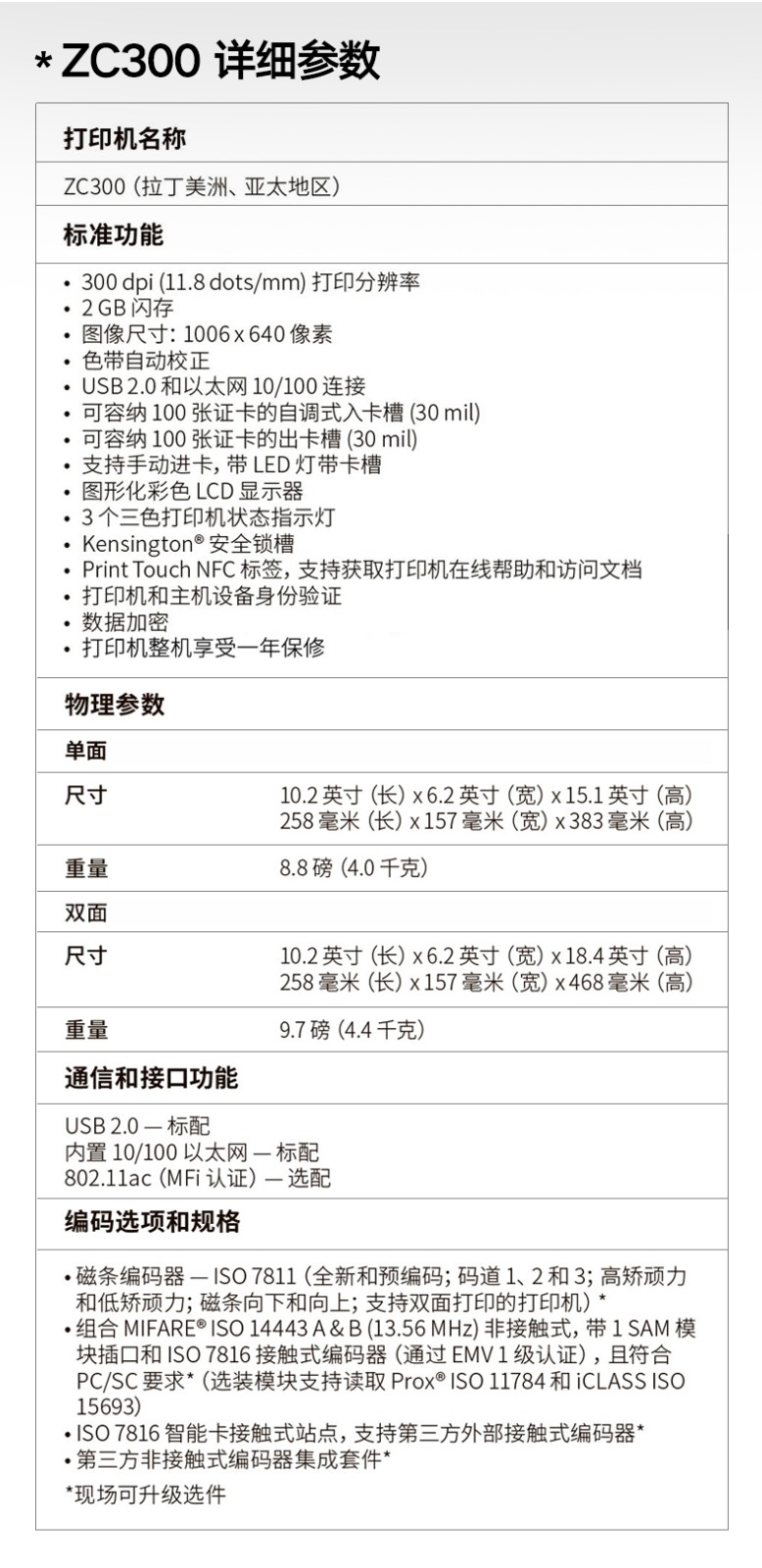 ZEBRA 斑马PVC证卡打印机人像卡会员卡健康卡员工卡热升华打印机 ZC300