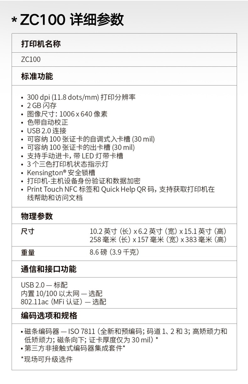 ZEBRA 斑马ZC100证卡打印机 制卡机/健康证/门禁卡/卡片打印机ZXP3C升级 ZC100证卡打印机
