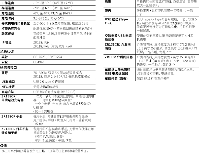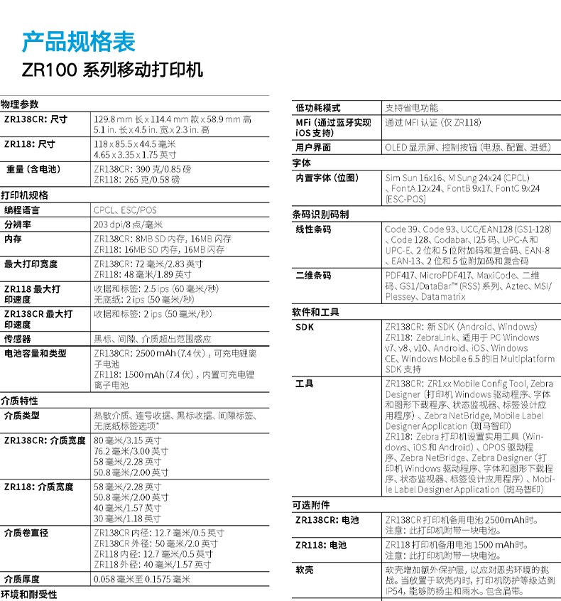 ZEBRA 斑马蓝牙便携打印机 无线条码标签打印机 ZR138 蓝牙版 (72mm宽)