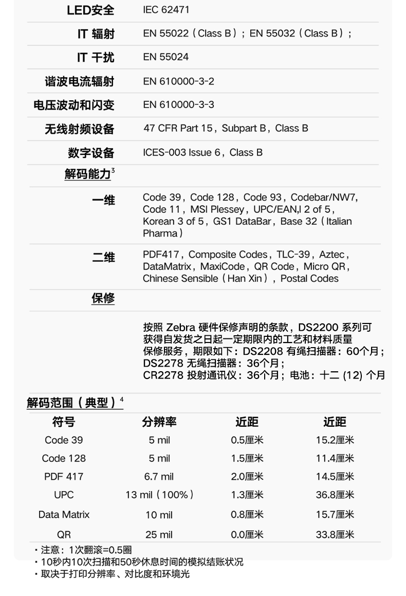 ZEBRA 斑马DS2208/2278一二维码条码枪条码枪扫码器 商超烟酒零售服装药店商品微信收银 DS2208-SR二维标配有线