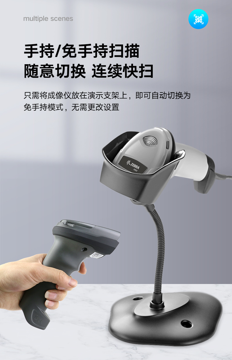 ZEBRA 斑马DS2208/2278一二维码条码枪条码枪扫码器 商超烟酒零售服装药店商品微信收银 DS2208-SR二维标配有线