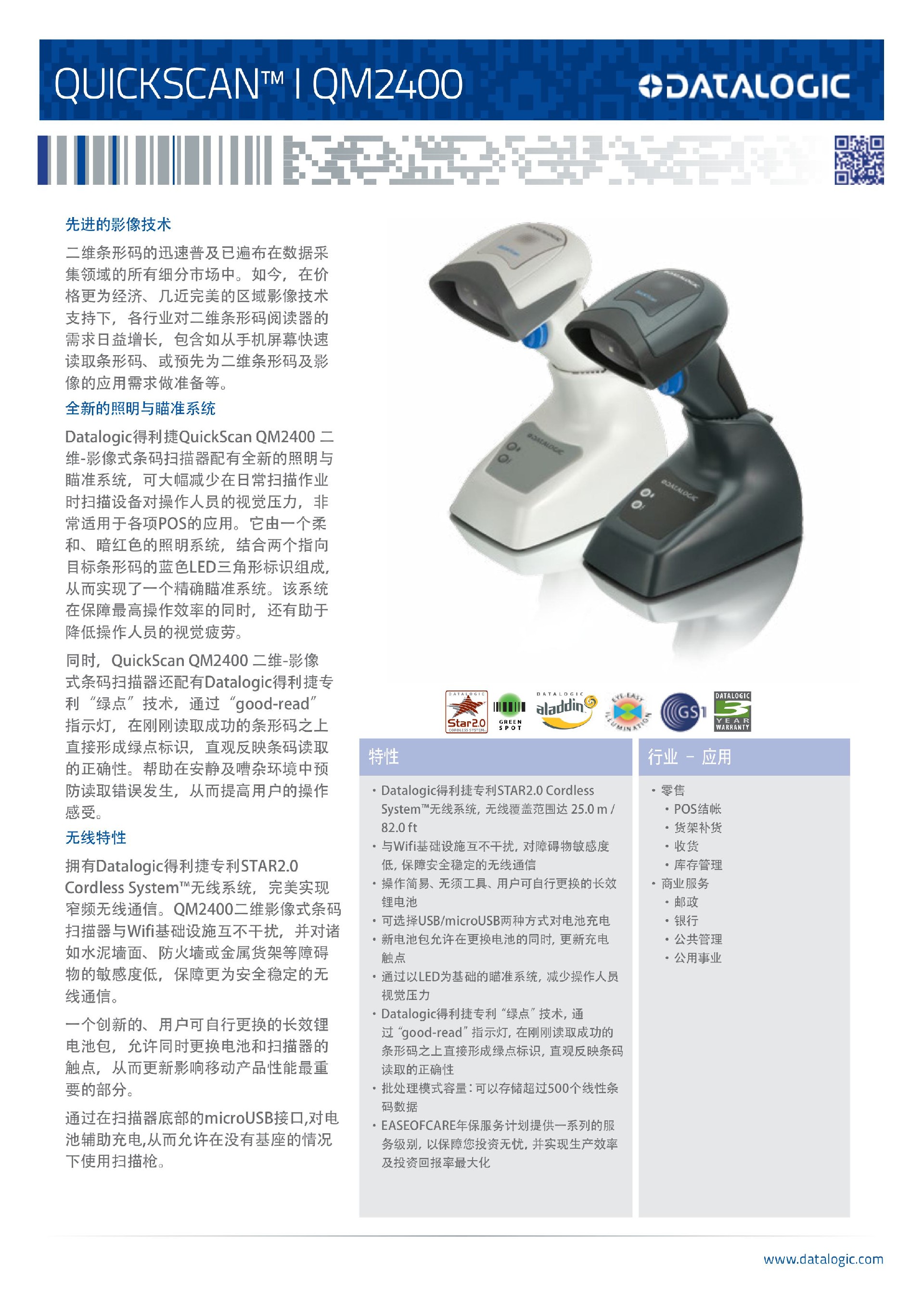先进的影像技术二维条形码的迅速普及已遍布在数据采集领域的所有细分市场中。如今,在价格更为经济、几近完美的区域影像技术支持下,各行业对二维条形码阅读器的需求日益增长,包含如从手机屏幕快速读取条形码、或预先为二维条形码及影像的应用需求做准备等
