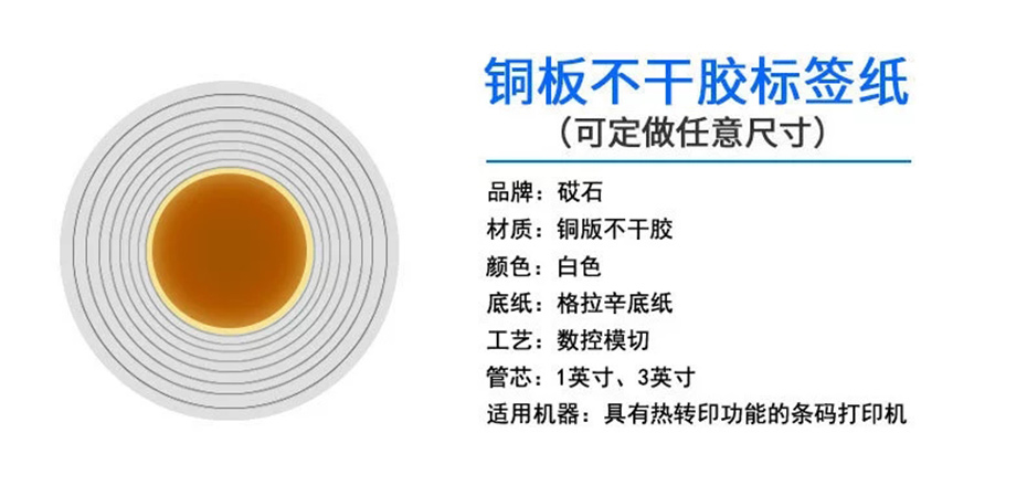 铜板不干胶标签纸适用于线缆标签、高端包装盒、化工、五金、电子、日化等范围。