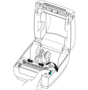 无论标签纸是内侧卷绕还是外侧卷绕,都可以用相同方式装入打印机。 去掉标签纸可以避免将有黏性或不清洁的介质卷入打印头和打印辊之间。
