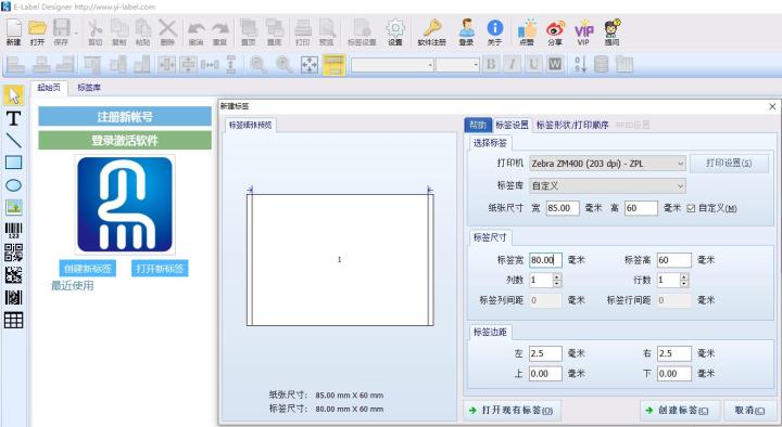 使用易标签软件为例,以下介绍标签纸的规格设置和标签内容设计:
