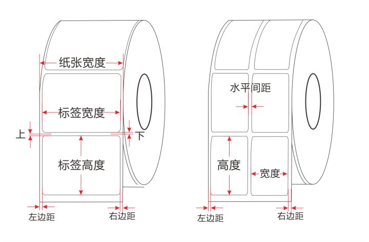 如上图,根据实际的标签纸规格,依次输入:纸张尺寸、标签尺寸和边距。如果是多行或者多列标签则需要设置间距。